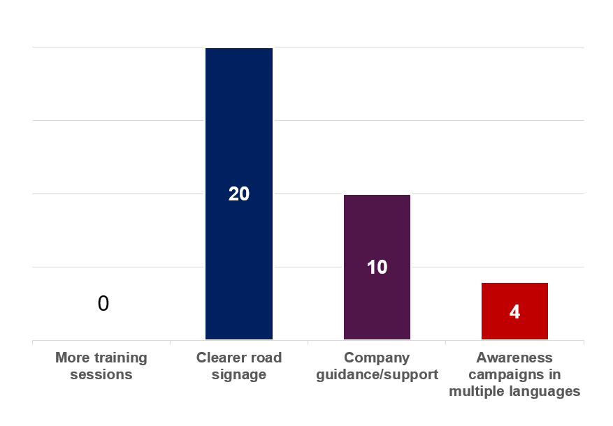 - 58% (20 riders): Need for clearer road signage.