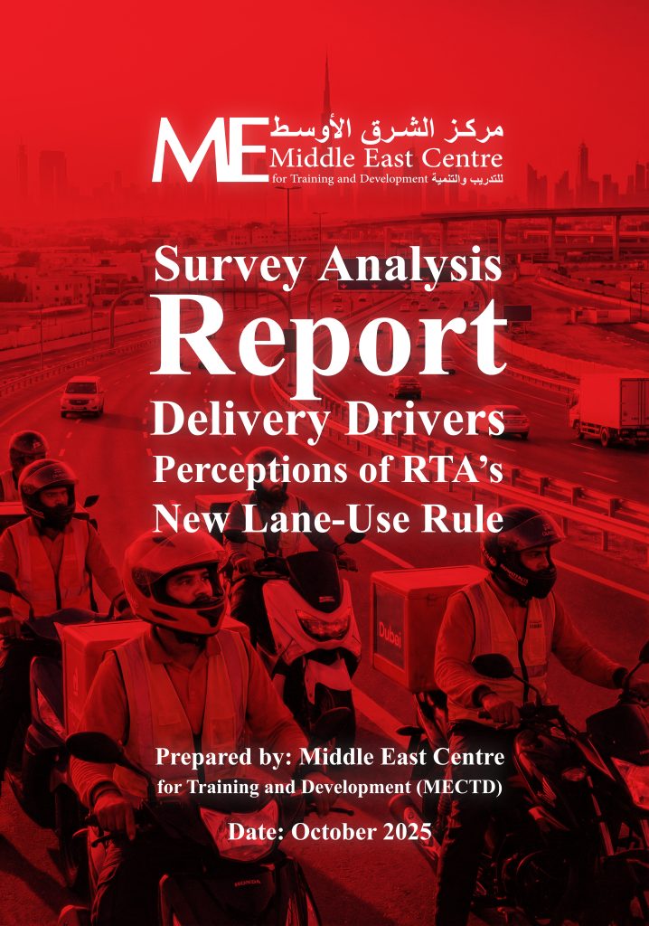 This report examines delivery riders’ perceptions of the Roads and Transport Authority’s (RTA) new land-use regulation[1] introduced on 1 November 2025, requiring delivery motorcycles to remain within lower-speed lanes on major roads in Dubai. The study draws on primary survey data collected from 34 delivery riders employed within a structured corporate environment.