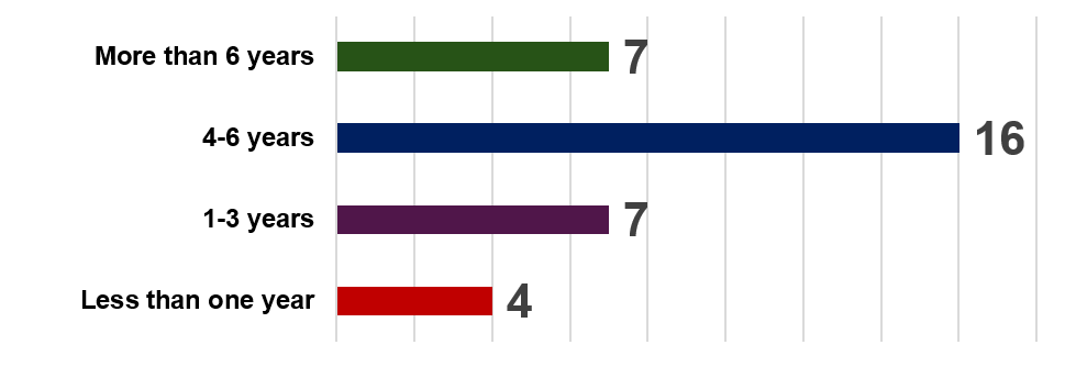- 20% (7 riders) have more than six years of experience.